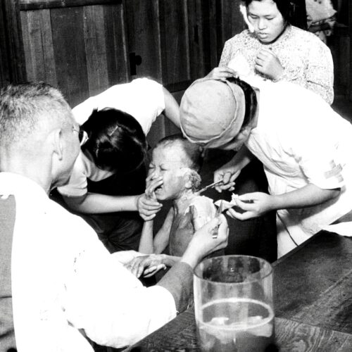 Un niño es tratado en Nagasaki. (Credito: Yasuo Tomishige/The Asahi Shimbun, vía Getty Images).