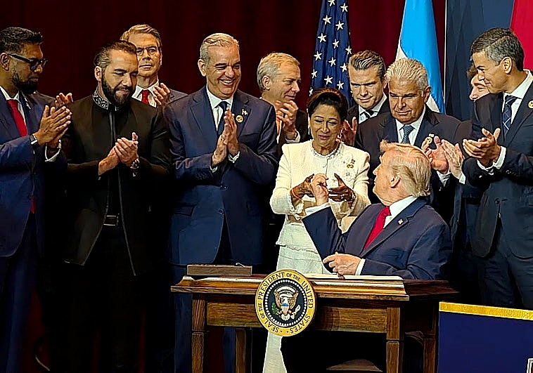 En realidad no se trataba de un acuerdo multilateral entre los países presentes. Según explicaron fuentes diplomáticas, el documento se cerró muy tarde y las delegaciones no tuvieron tiempo de revisar ni negociar un tratado conjunto. Lo que Trump firmó fue una proclamación presidencial, en la práctica un decreto, con el que Estados Unidos fija su estrategia para combatir a los carteles y organizaciones criminales en el continente.